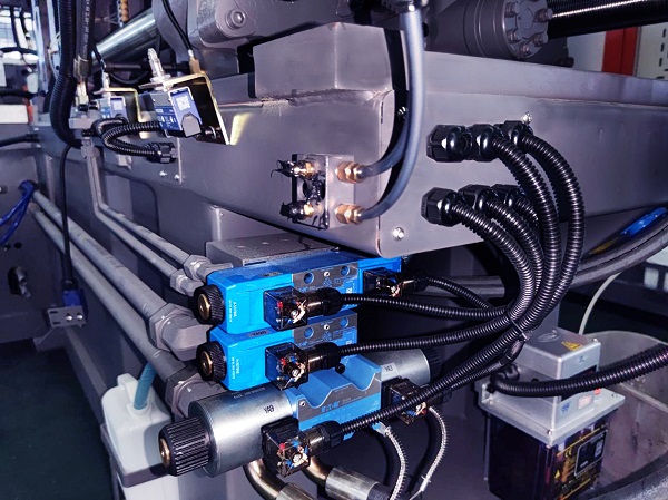 優化傳統雙缸射臺設計,采用拱形一體式射臺座,取消傳統兩點支撐,提升射臺整體剛性,射臺動作更加平穩。射臺油制控制部分直接連接射膠油缸,提高動作響應。(320噸以上機器配置雙射移裝置)